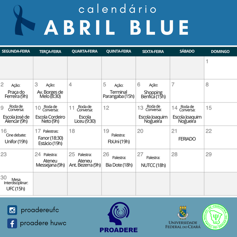 É com orgulho que a equipe PROADERE divulga sua programação para a campanha ABRIL BLUE de 2018!